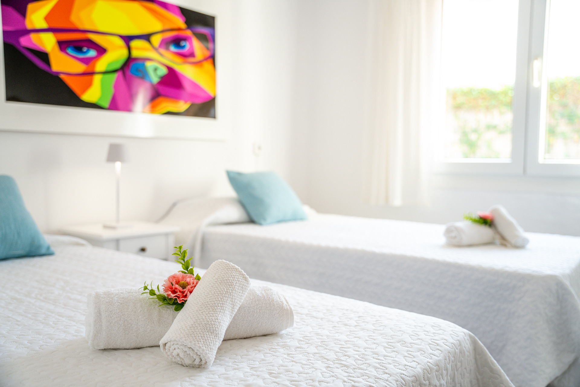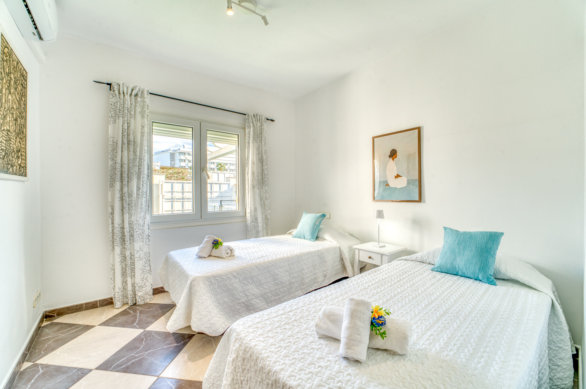Im Erdgeschoss empfangen Sie ein Badezimmer mit Badewanne und zwei Zimmer, die Optionen für jeden Geschmack bieten, mit einem Doppelbett und zwei Einzelbetten. Im Obergeschoss vervollständigen ein weiteres Badezimmer mit Badewanne und zwei zusätzliche Zimmer mit zwei Einzelbetten, wobei eines dieser Zimmer Zugang zu einer privaten Terrasse hat, den Zufluchtsort. Alle Räume verfügen über Klimaanlage und gewährleisten eine erholsame Ruhepause.