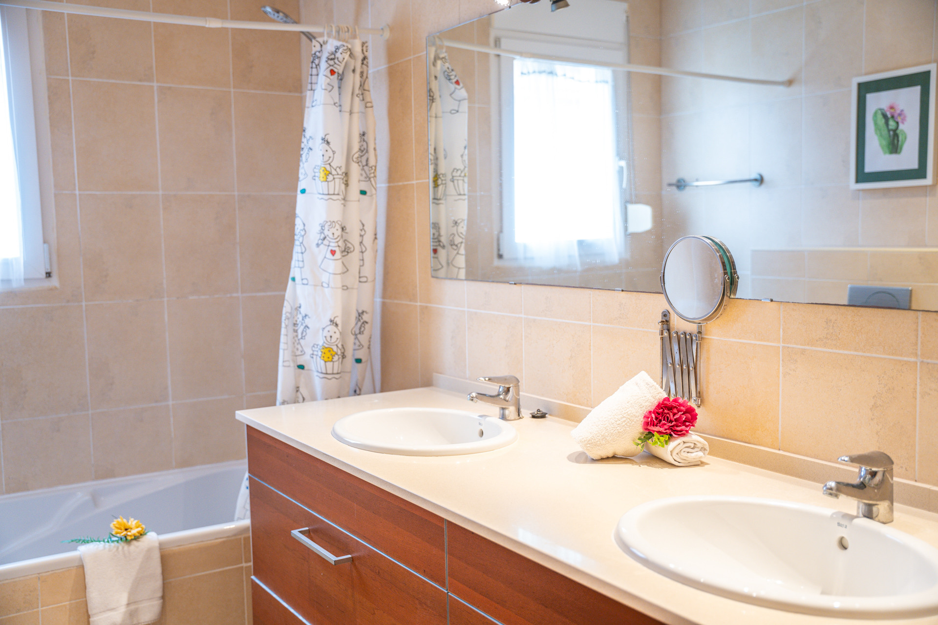 Im Erdgeschoss empfangen Sie ein Badezimmer mit Badewanne und zwei Zimmer, die Optionen für jeden Geschmack bieten, mit einem Doppelbett und zwei Einzelbetten. Im Obergeschoss vervollständigen ein weiteres Badezimmer mit Badewanne und zwei zusätzliche Zimmer mit zwei Einzelbetten, wobei eines dieser Zimmer Zugang zu einer privaten Terrasse hat, den Zufluchtsort. Alle Räume verfügen über Klimaanlage und gewährleisten eine erholsame Ruhepause.