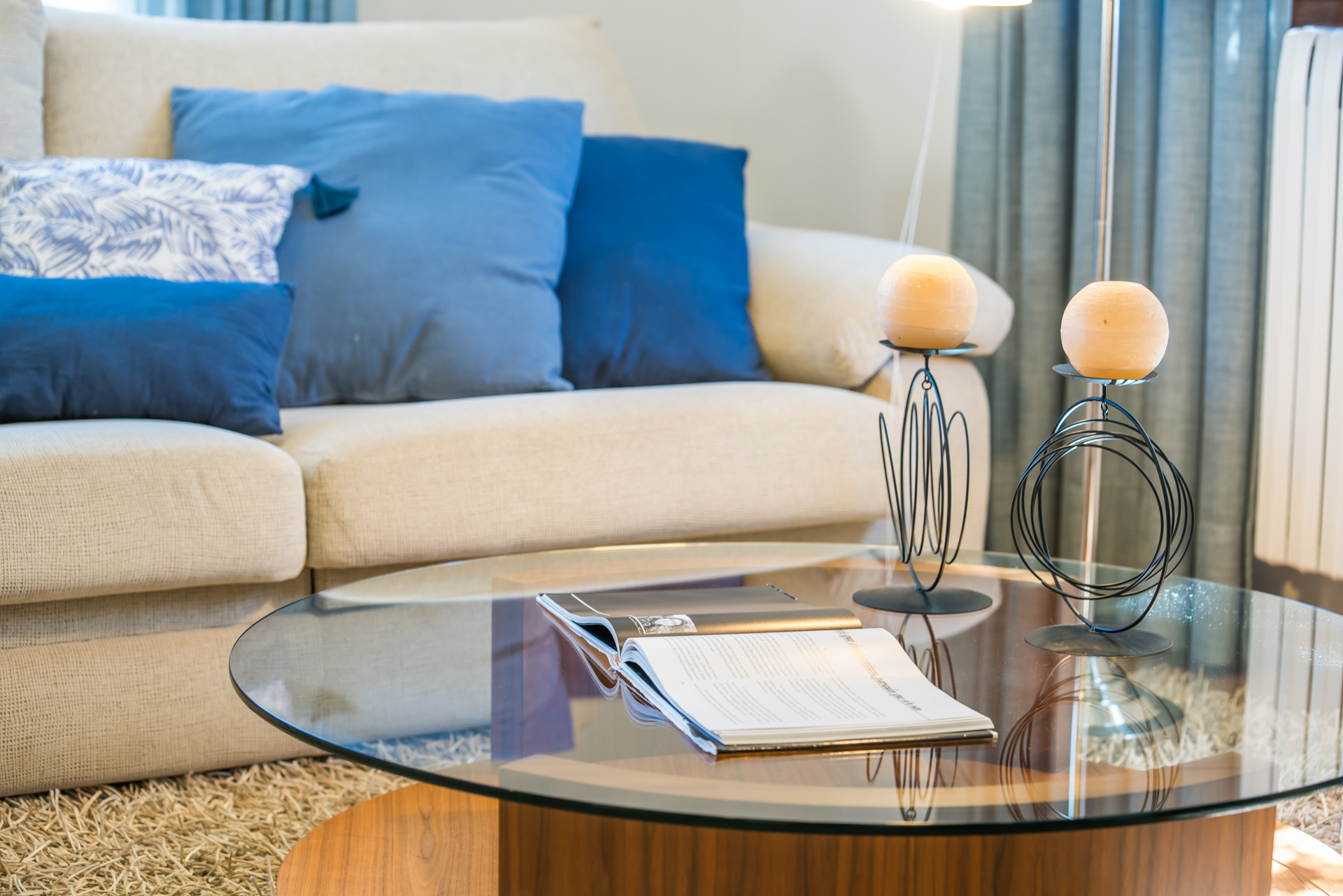 Im Inneren des Hauses finden Sie ein gemütliches und helles Wohnzimmer mit einem großen Sofa zum Ausruhen nach einem Ausflugstag oder zum bequemen Fernsehen, wo sich auch ein kleiner Essbereich zum Vesper befindet.