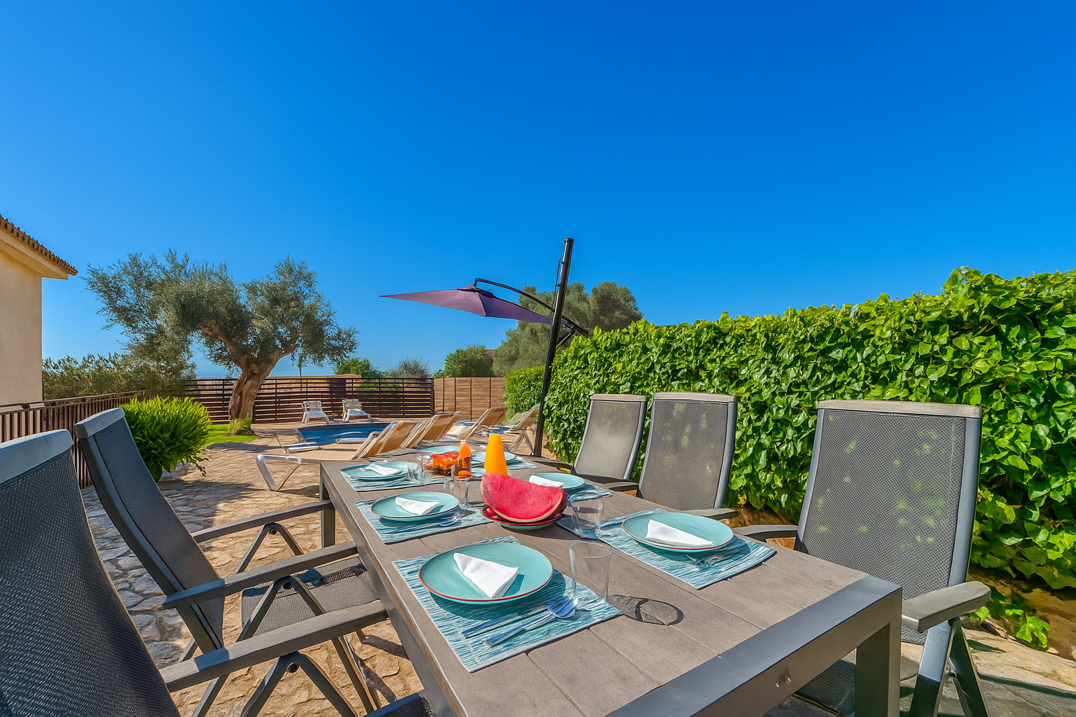 We are a group of five friends who were looking for a holiday in Mallorca. We absolutely loved it because we were able to relax on the sunbeds and swim in the pool, which we had completely to ourselves. The kitchen is spacious, and we could all cook together as it is large and fully equipped with everything we needed. The living room is very big, and we enjoyed watching movies there. It truly felt like a dream because the house is fully equipped to enjoy the perfect holiday.