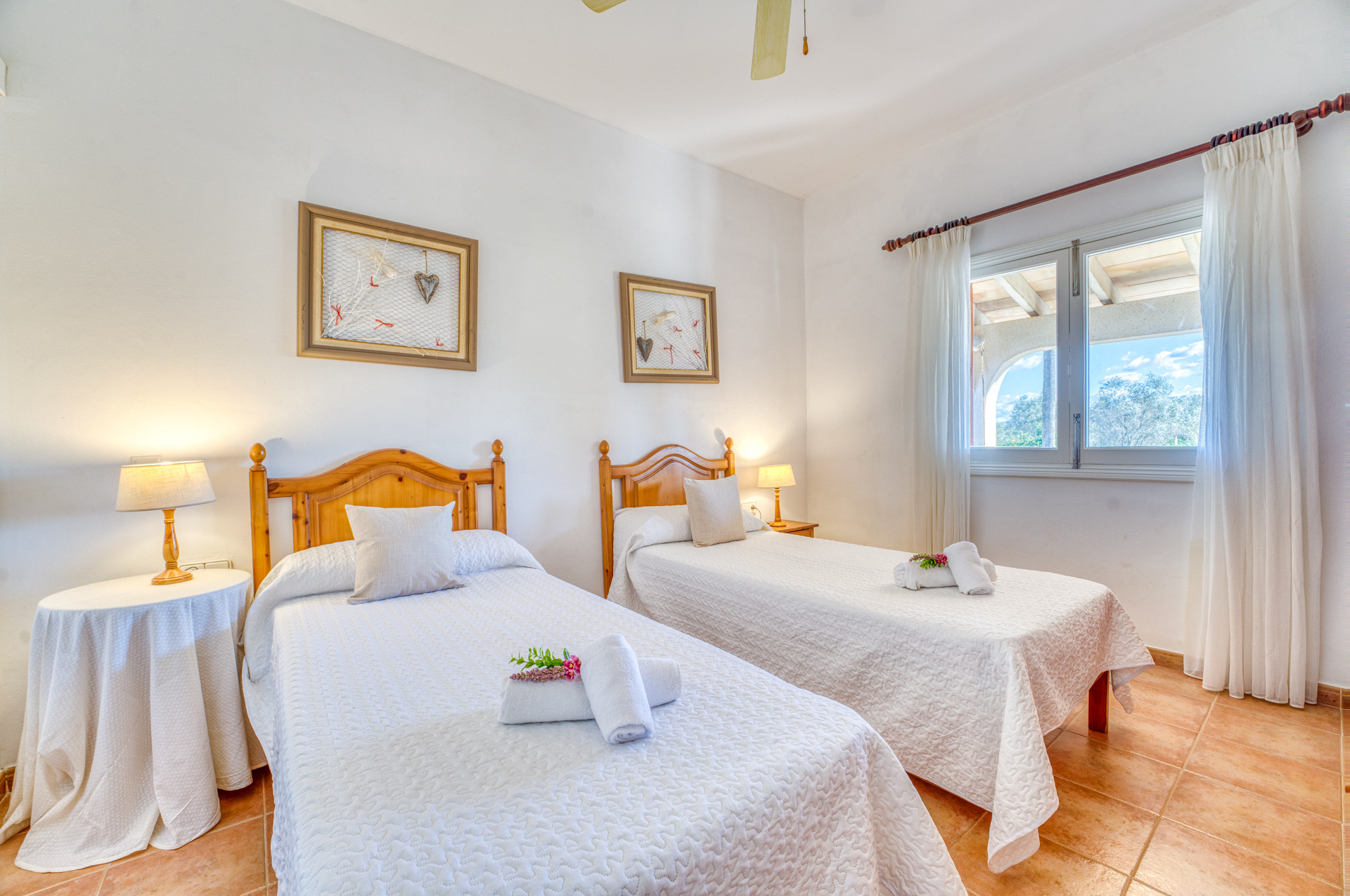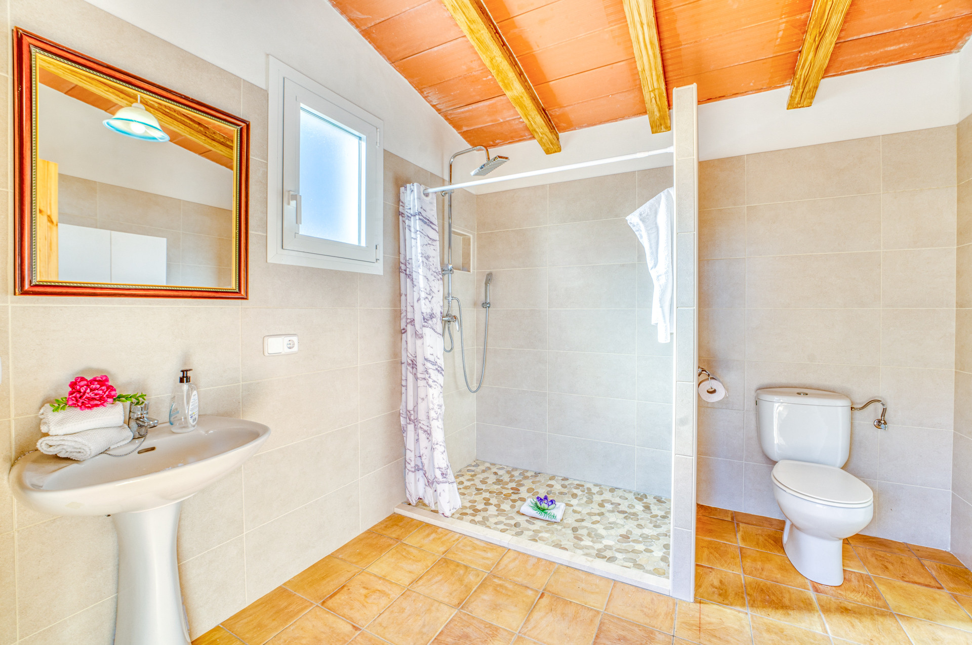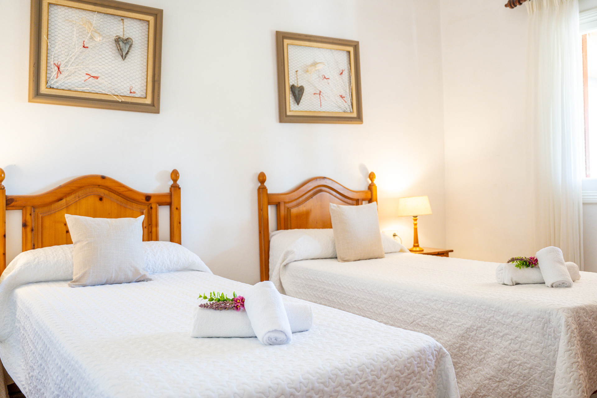Die Schlafzimmer befinden sich in derselben Zone und verfügen alle über Einzelbetten. Zwei von ihnen haben Klimaanlagen, während der dritte mit einem Deckenventilator ausgestattet ist. Das Hauptbadezimmer mit Dusche befindet sich neben den Schlafzimmern. Darüber hinaus bietet die Finca ein zweites Duschbad im Außenbereich für mehr Komfort.