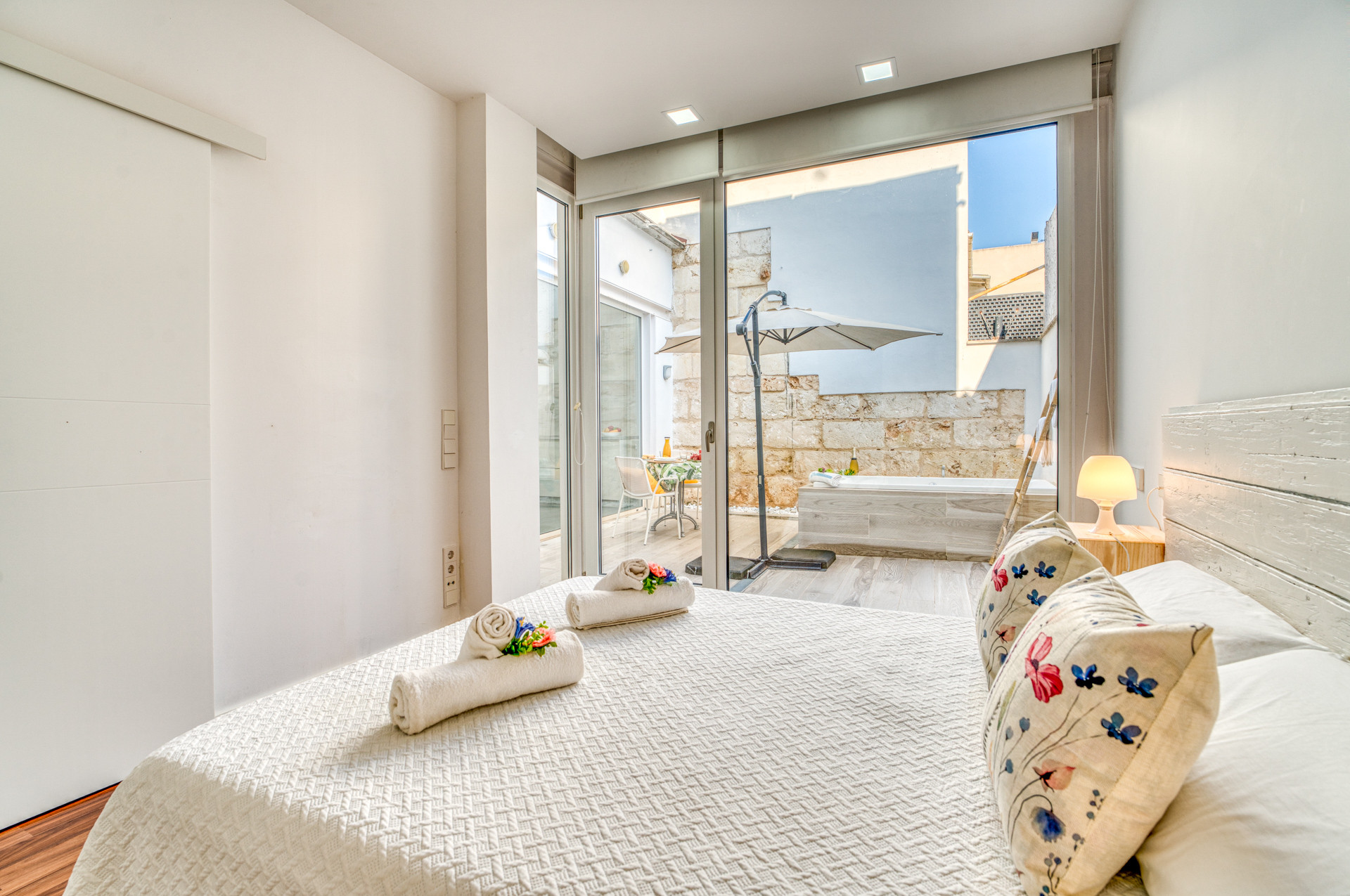 Esta encantadora vivienda en planta baja combina el encanto mediterráneo con el confort de un apartamento moderno. Su diseño funcional, la luz natural que inunda cada rincón y el acceso directo a la terraza con jacuzzi la convierten en el lugar perfecto para disfrutar de una estancia relajada en pareja.