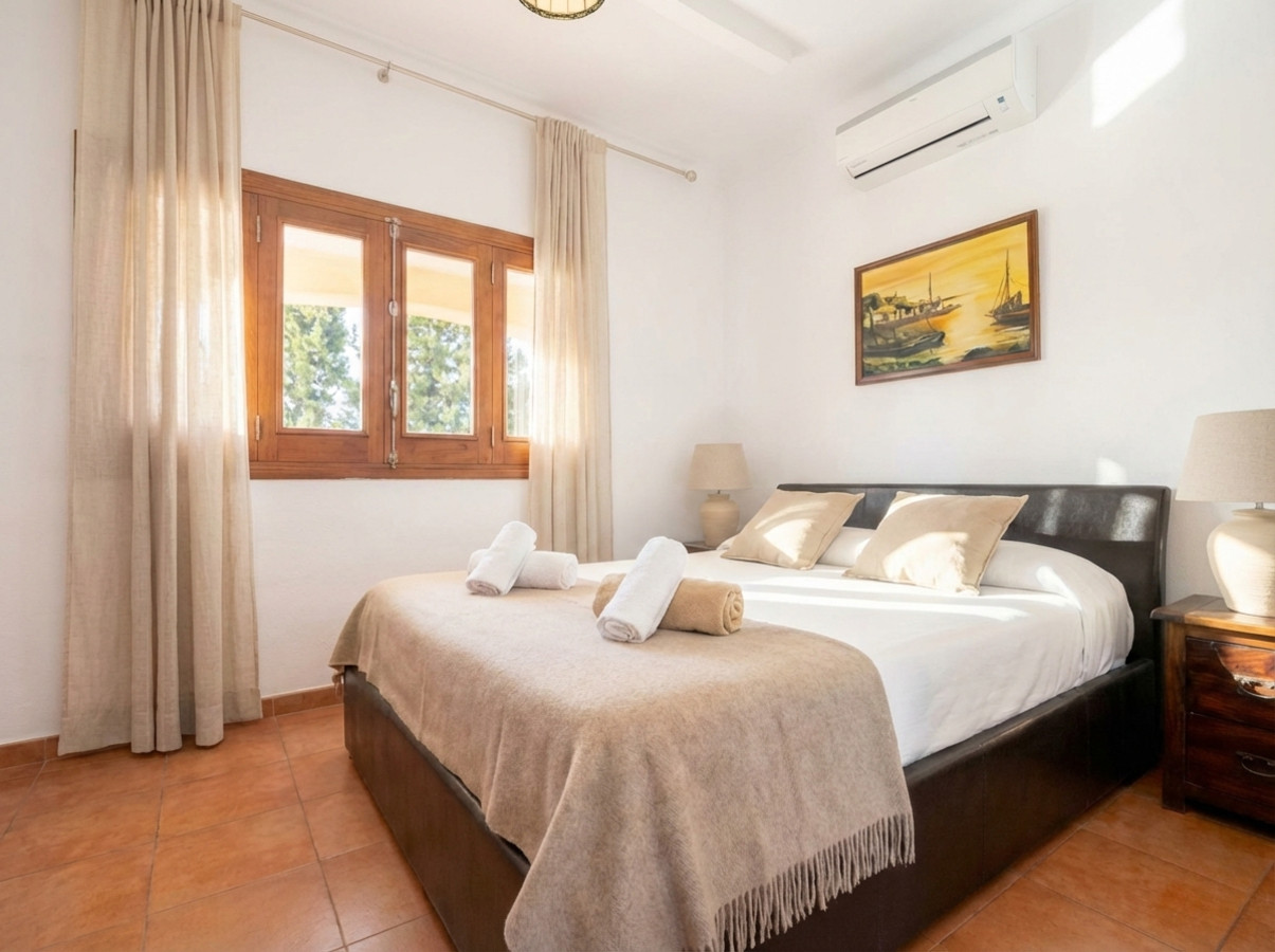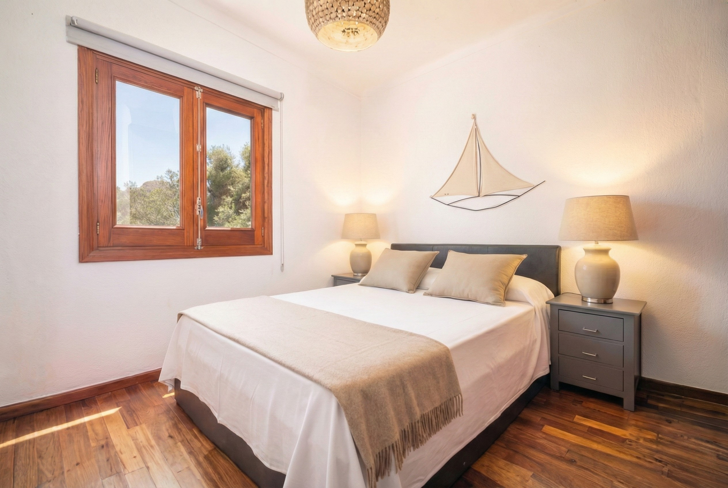 El interior de Bell Lloc es espacioso, luminoso y confortable. Está completamente equipado para disfrutar de unas vacaciones sin preocupaciones. El salón ofrece un espacio acogedor con sofás cómodos y muebles de calidad. La cocina principal está totalmente equipada para una estancia cómoda y práctica. La propiedad cuenta con seis dormitorios y cinco baños, uno de ellos un aseo. Cuatro dormitorios tienen camas dobles, uno de ellos de matrimonio. Los otros dos tienen camas individuales. Toda la casa está equipada con aire acondicionado para garantizar la máxima comodidad durante todo el año.