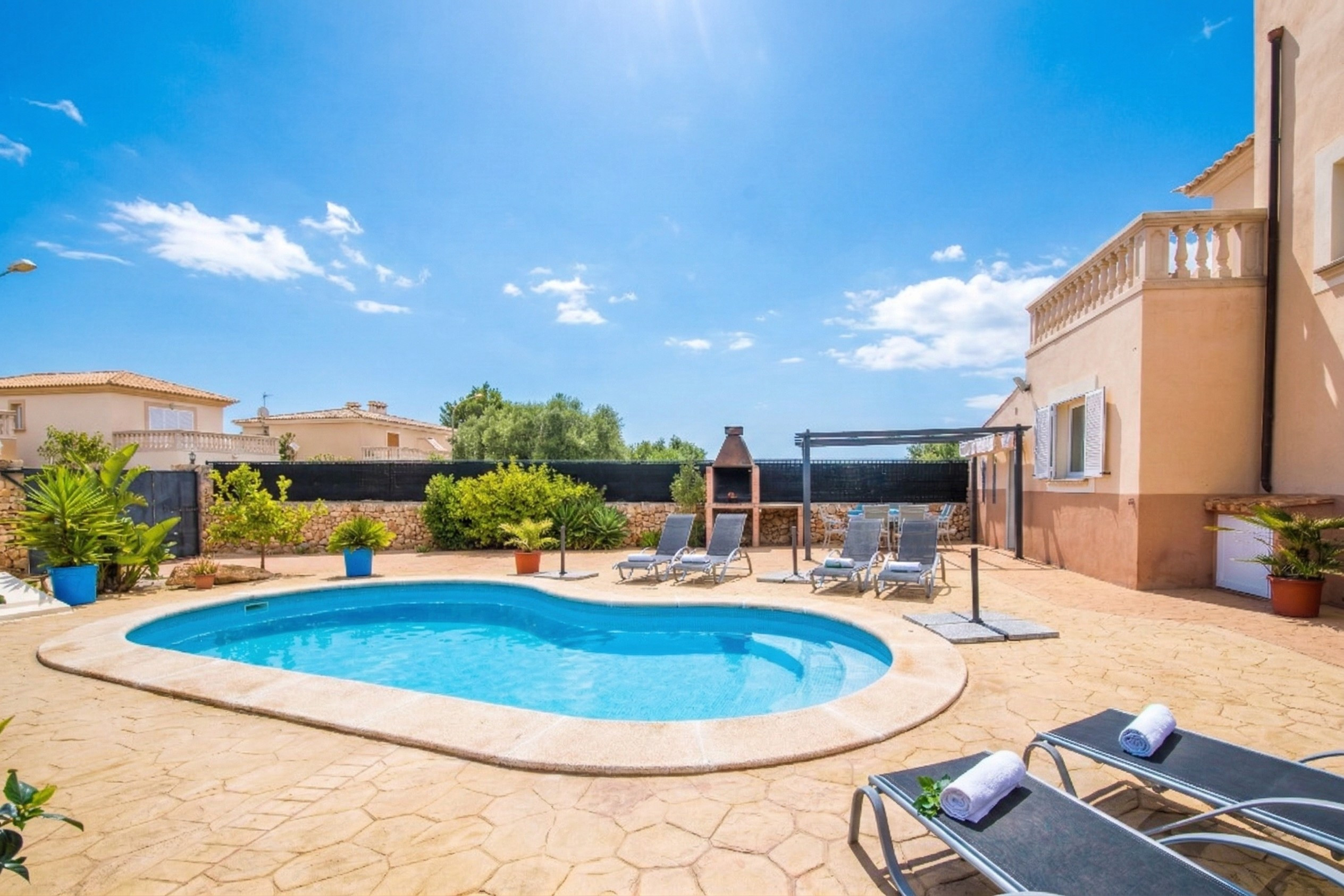 très jolie maison dans un quartier très calme. maison très bien équipée pour notre séjour. nous étions 4 adultes et 2 adolescents. il y a quelques restaurants à 5 min à pieds. la voiture reste indispensable pour les excursions et accéder au belles plages de sable blanc marjorquine. et le must reste la piscine !!! l'hôte à été disponible et réactif avant et pendant tout le séjour. nous recommandons !!