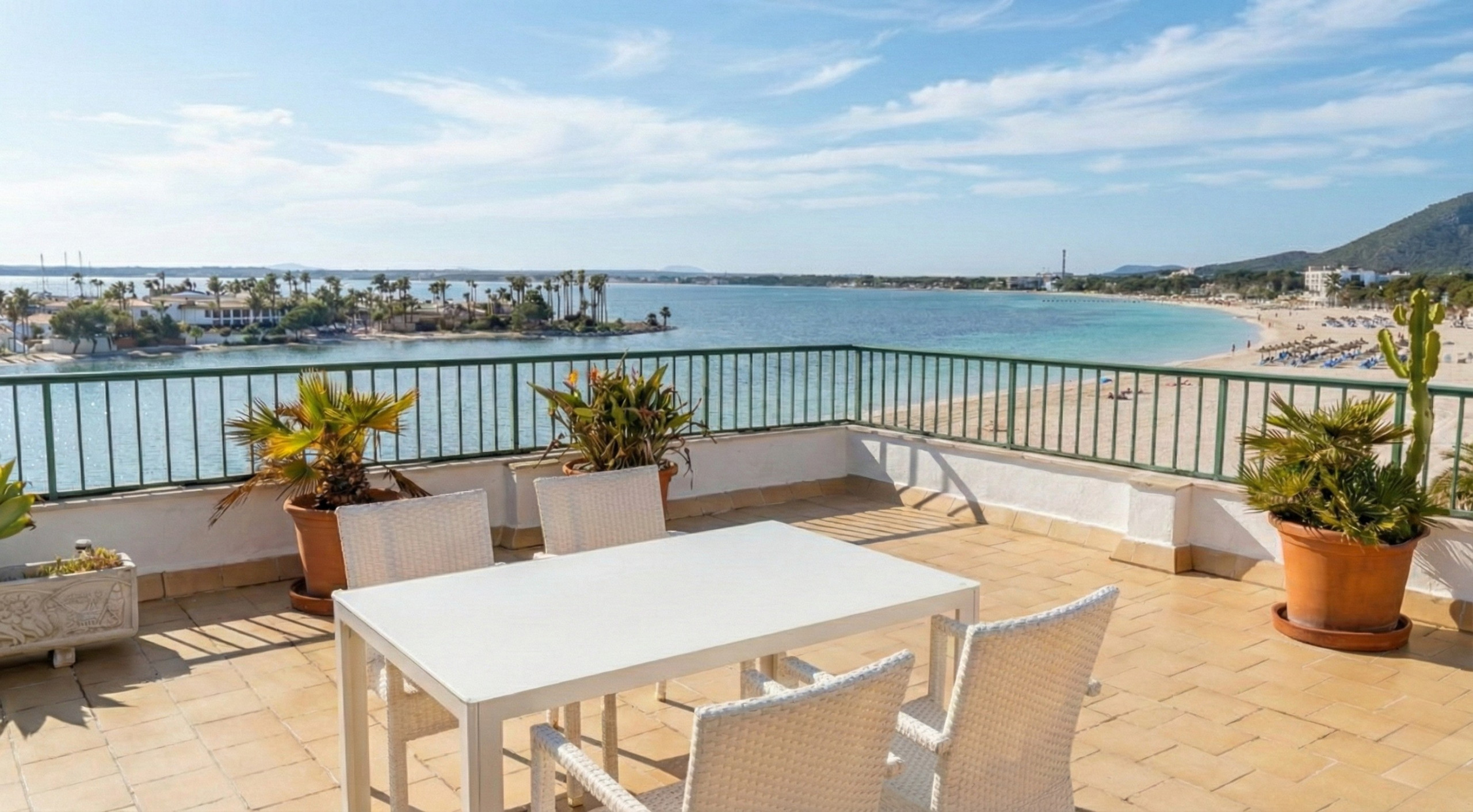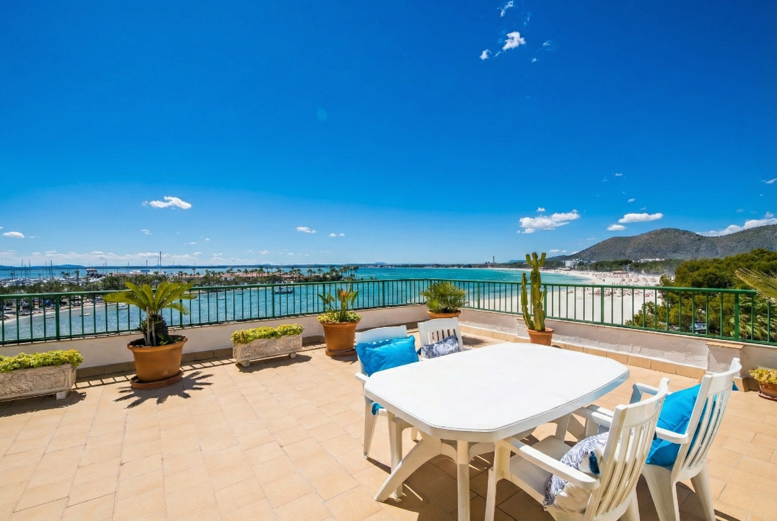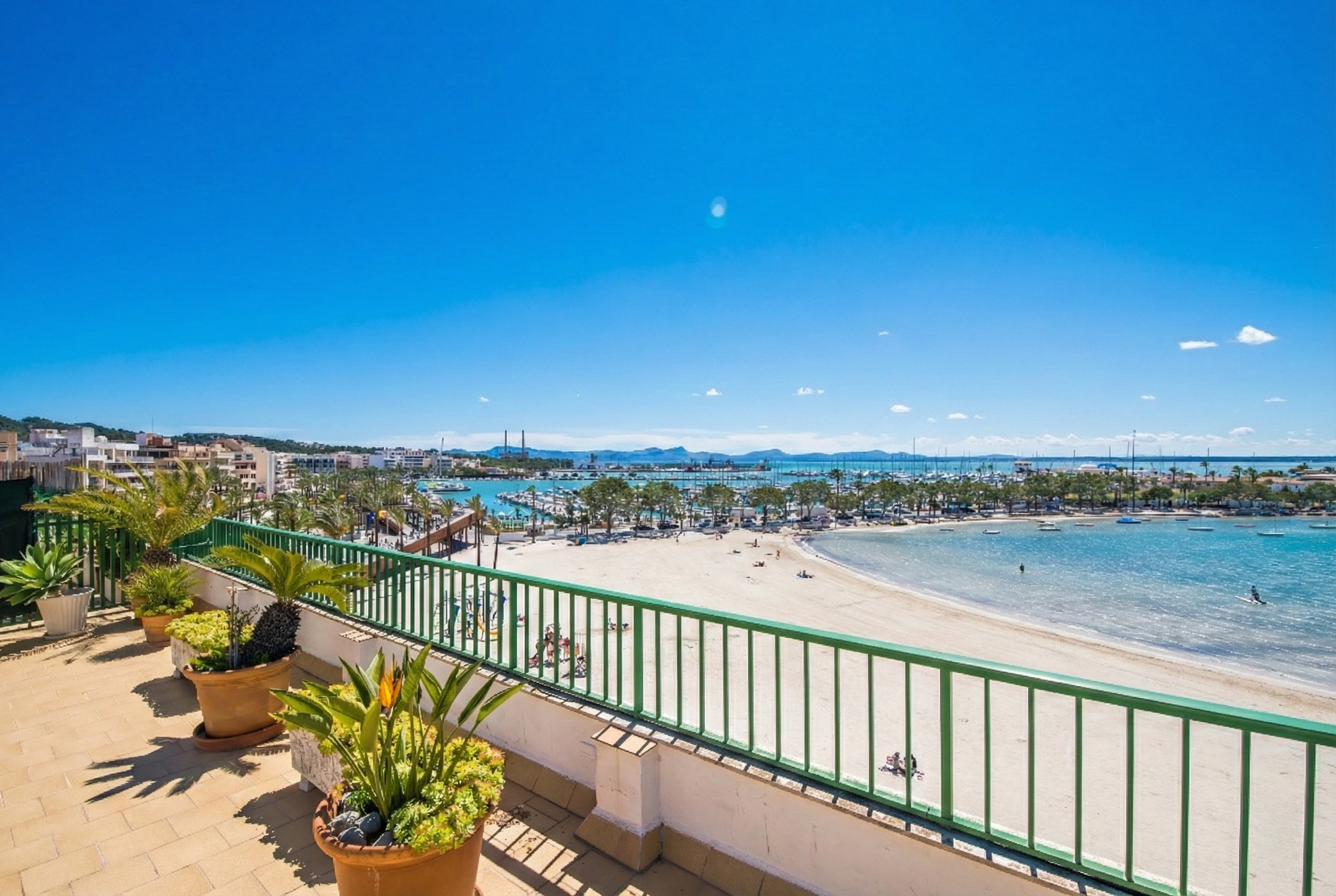 Modern apartment on Alcudia beach, with panoramic sea and mountain views, first-class equipment and ideal location, situated in Puerto de Alcudia, one of Mallorca's most popular ports.