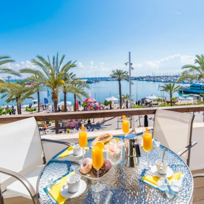 The sea is so close that you only have to go down a few flights of stairs and cross the brick pier to enjoy the water of Mallorca.